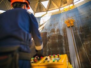傳統(tǒng)儲罐焊縫打磨方式有兩種,一種是手持式電動角磨機進行磨削,另一種是開放式噴砂打磨,德高潔自主研發(fā)了一款能夠應(yīng)對大型儲罐焊縫自動打磨的噴砂爬壁機器人,設(shè)備操作簡單、靈活度高、能夠代替人工完成儲罐內(nèi)部焊縫打磨作業(yè)。[查看詳情]