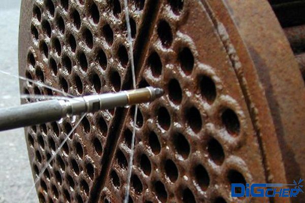 2、可防止刷管過程中的堵管現(xiàn)象,對于一般運行中的堵管,如果時間不長,結塊不十分硬的,用高壓噴槍也可將其沖開;